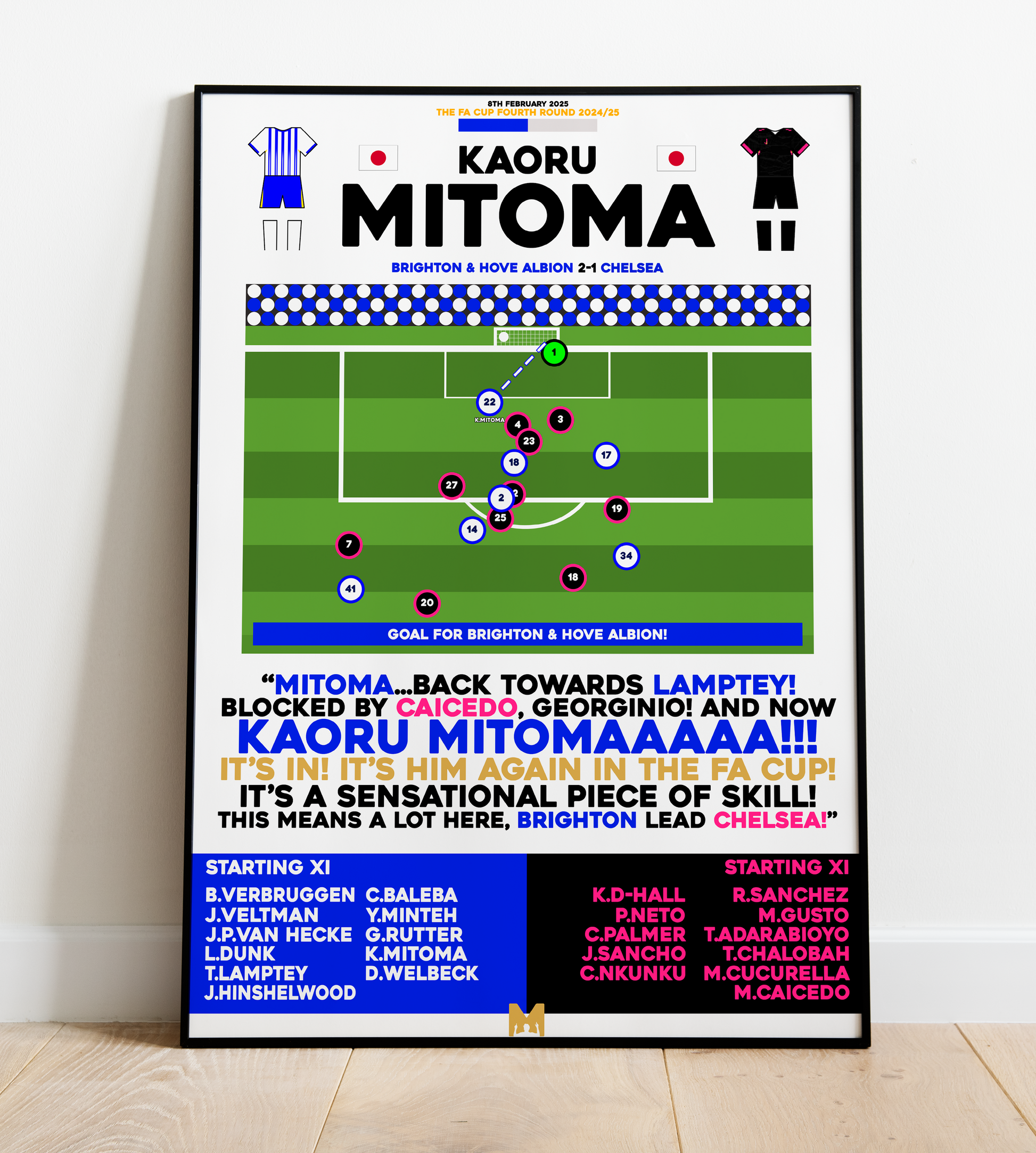 Capture Forever Kaoru Mitoma's goal vs Chelsea in the 2024/25 FA Cup Campaign. An iconic moment in Brighton folklore.