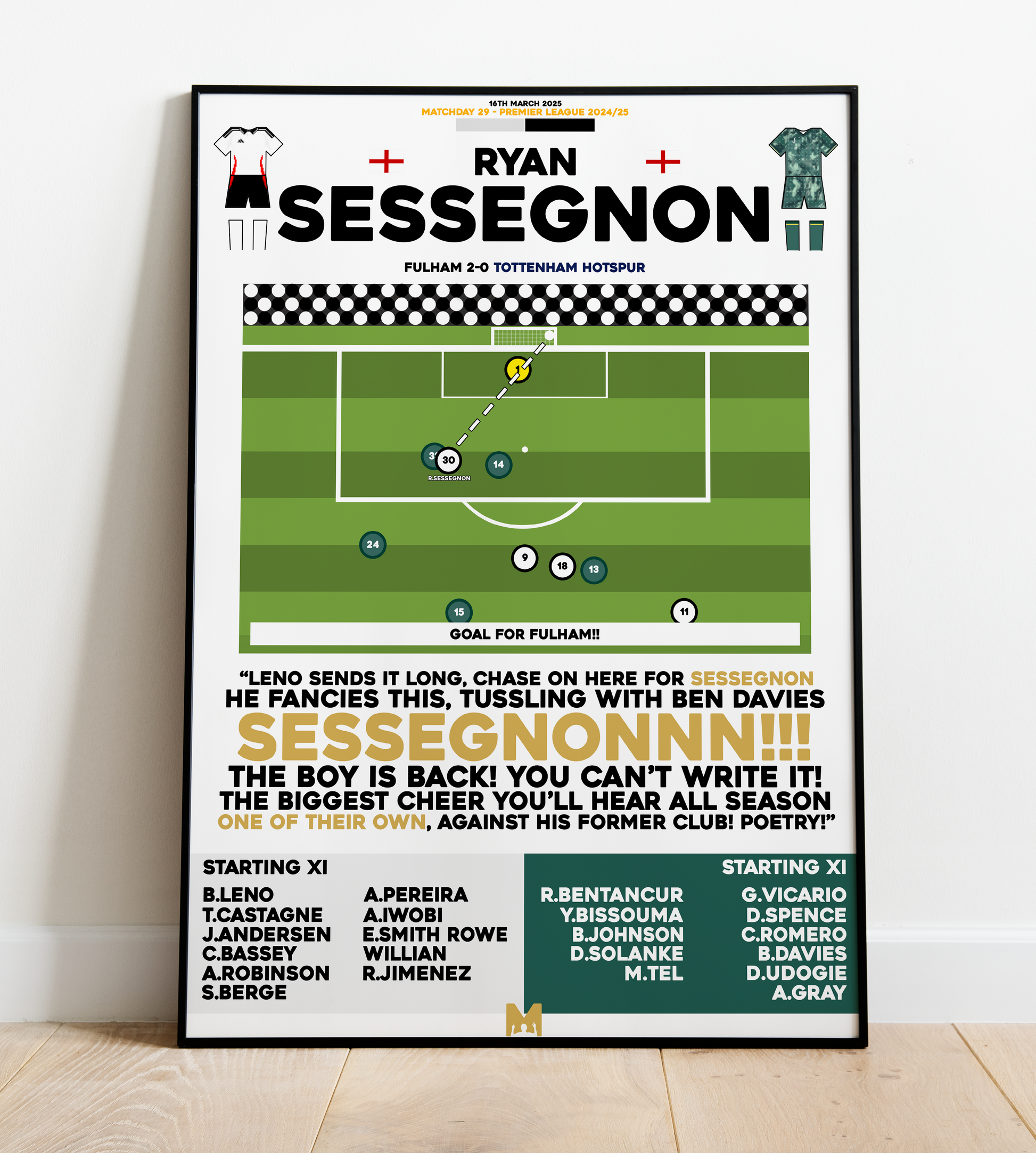 Capture Forever Ryan Sessegnon's goal vs Spurs in the 2024/25 Premier League Campaign, an iconic moment in Fulham folklore.